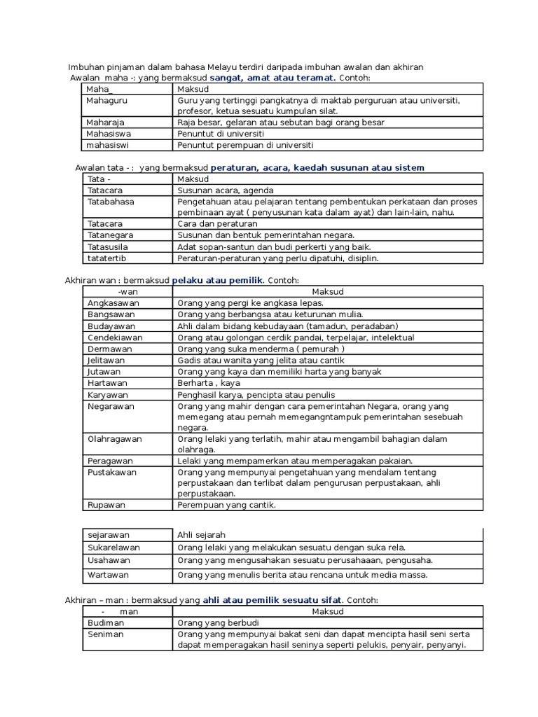 Imbuhan Pinjaman Dalam Bahasa Melayu Terdiri Daripada Imbuhan Awalan Dan Akhiran Pdf
