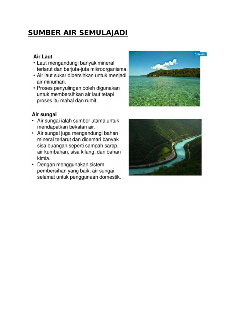 Sumber Air Semula Jadi Air Semula Mudahnya Sains Upsr Facebook